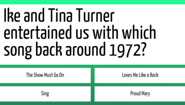 In this fun trivia quiz we're going to ask questions like "Elvis Presley entertained us with which song back around 1970?" and "Ike and Tina Turner entertained us with which song back around 1971?".