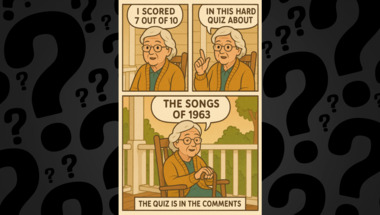 7/10 is what people on average are scoring in this trivia quiz so far. Are you ready to answer questions like "In "Green Green Grass of Home", Mary's lips are compared to which fruit?" and "In 1965, Herman's Hermits were leaning on what object?"