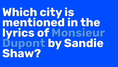 6/10 is the score to beat in this trivia quiz to put yourself over the average quiz taker. But you're probably going to be able to answer questions "Which city is mentioned in the lyrics of "Monsieur Dupont" by Sandie Shaw?" and "According to Duane Eddy, what at night are big and bright, deep in the heart of Texas.." easy!