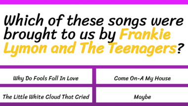 4/10 is the score to beat in this trivia quiz to put yourself over the average quiz taker. But you're probably going to be able to answer questions "Which of these songs were brought to us by "Frankie Lymon and The Teenagers"?" and "Which of these songs were brought to us by "The Fontane Sisters"?" easy!