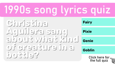 6/10 is the score to beat in this trivia quiz to put yourself over the average quiz taker. But you're probably going to be able to answer questions "Christina Aguilera sang about what kind of creature in a bottle?" and "The Backstreet Boys told you to quit playing games with their what?" easy!