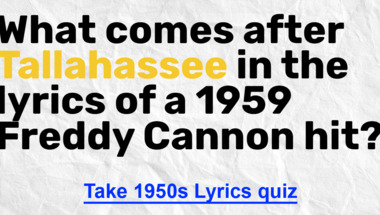 In this fun trivia quiz we're going to ask questions like "What comes after "Tallahassee" in the lyrics of a 1959 Freddy Cannon hit?" and "Some of the lyrics to "Lisbon Antigua" by Nelson Riddle are sung in which language?".
