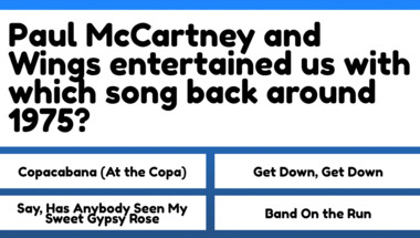 4/10 is the score to beat in this trivia quiz to put yourself over the average quiz taker. But you're probably going to be able to answer questions "The Beatles entertained us with which song back around 1970?" and "Paul McCartney and Wings entertained us with which song back around 1975?" easy!