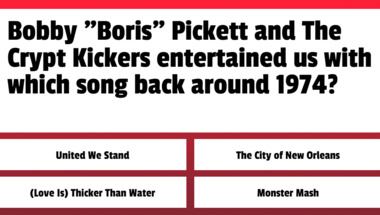 5/10 is the score to beat in this trivia quiz to put yourself over the average quiz taker. But you're probably going to be able to answer questions "The Rolling Stones entertained us with which song back around 1970?" and "Bobby "Boris" Pickett and The Crypt Kickers entertained us with which song .." easy!