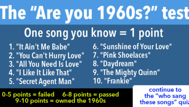 If you can answer "Who sang this song : "I'm a Believer" back in the 1960s?" and maybe even "Who sang this song : "Strangers In the Night" back in the 1960s?" there is a good chance that you're going to beat the average score of 6/10 in this trivia quiz
