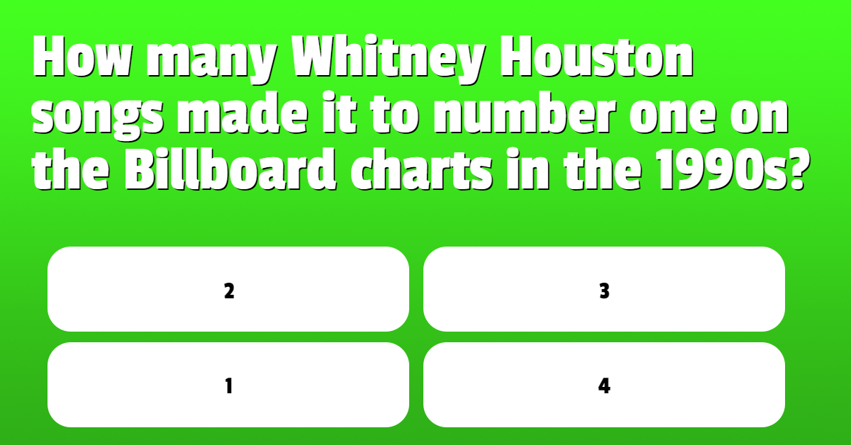 How many Whitney Houston songs made it to number one on the Billboard charts in the 1990s?